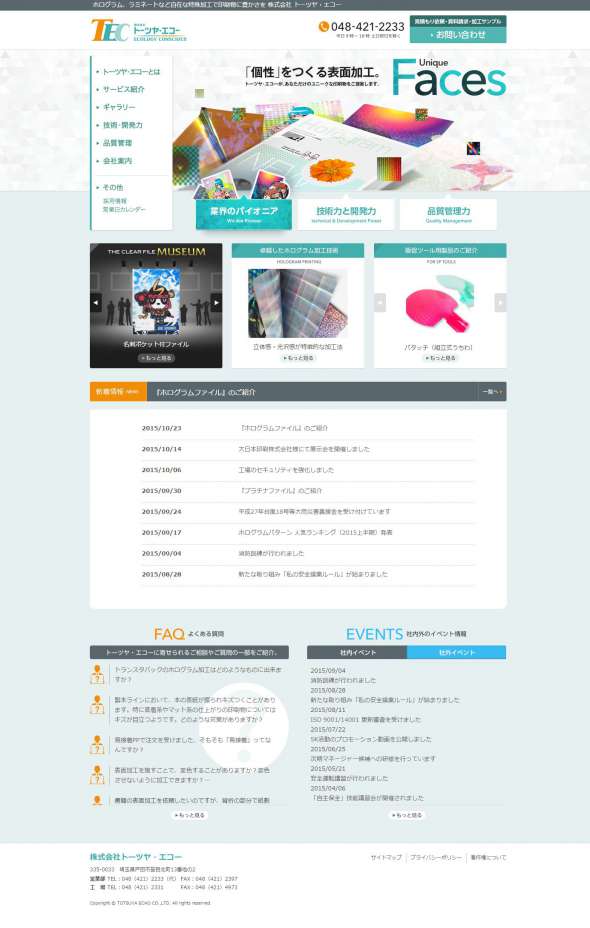クリアファイル加工、ホログラム、ラミネート加工 株式会社トーツヤ・エコー