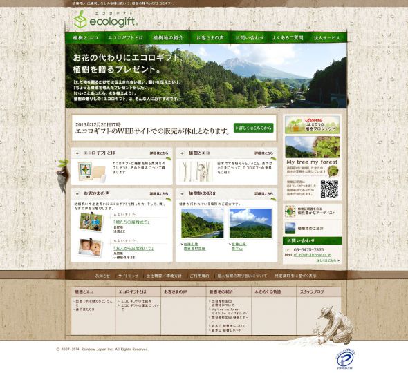 結婚祝いや出産祝い、法人キャンペーンに、みどりの森を贈る「エコロギフト」